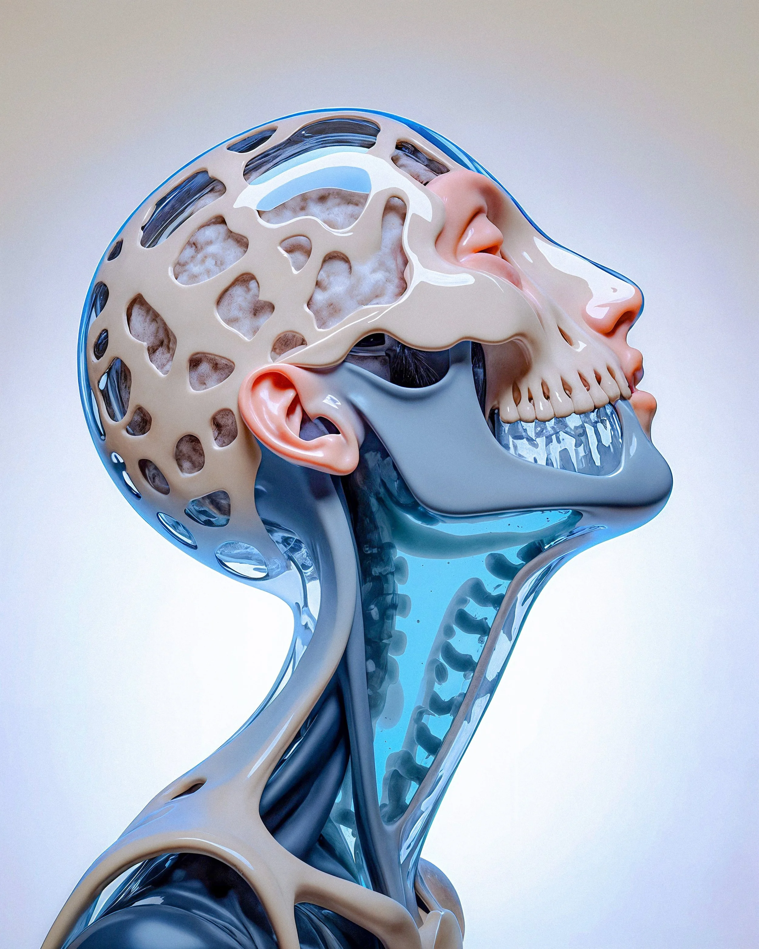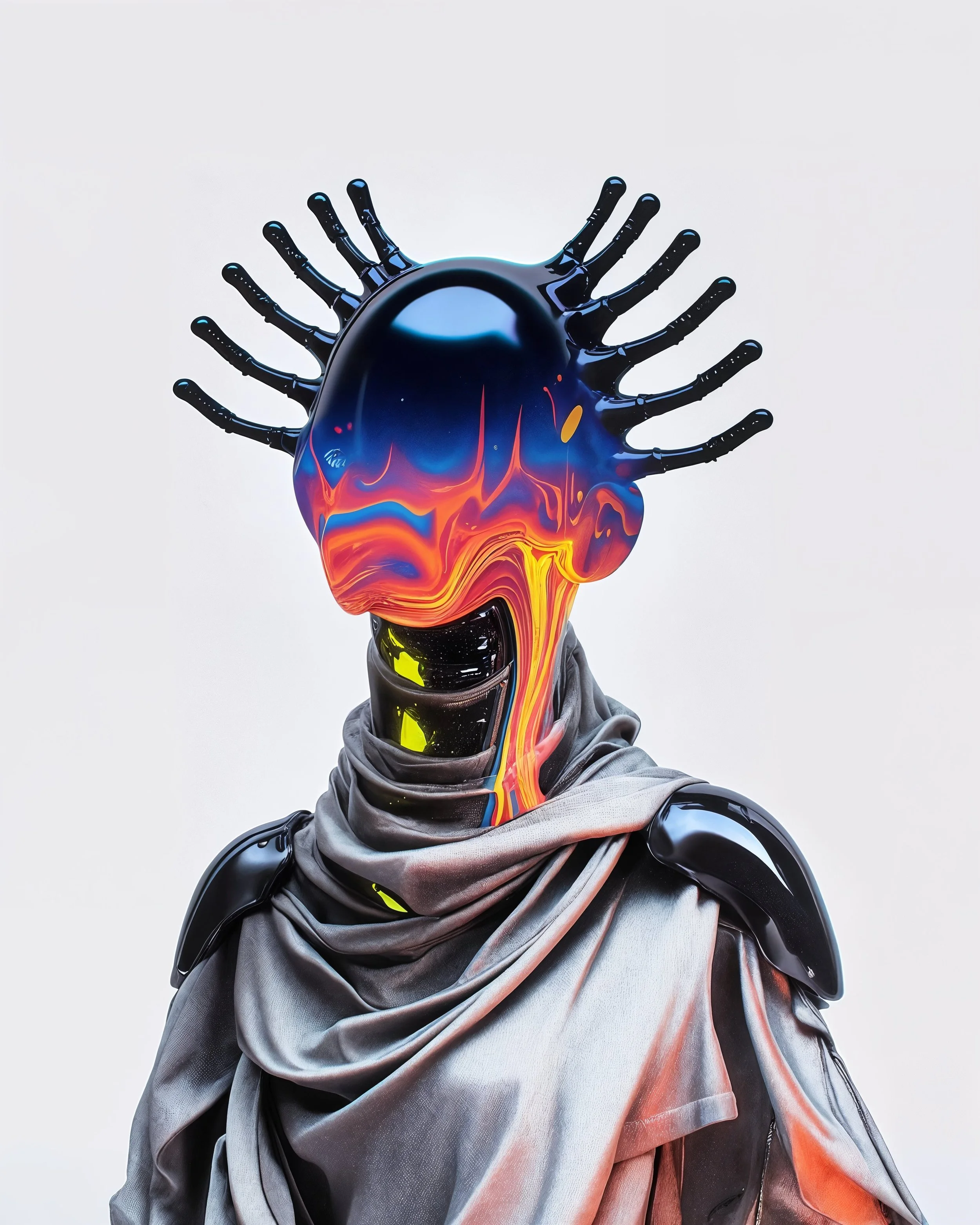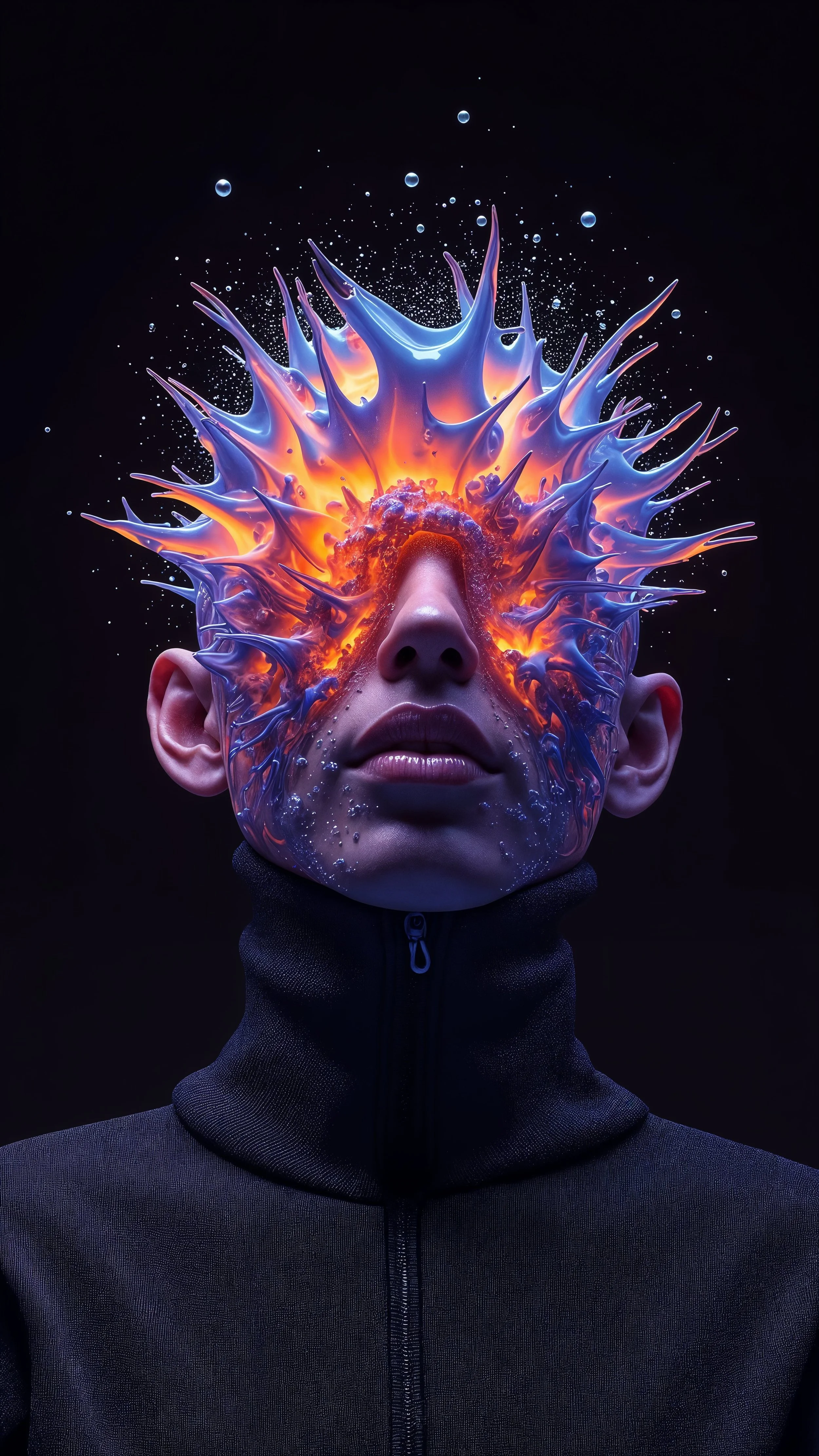 With a focus on emotion and abstraction, his pieces often depict fluid, biomechanical forms, reflective surfaces, and dreamlike distortions of reality. Each composition offers a glimpse into a world where human evolution merges with digital consciousness, evoking both beauty and unease.