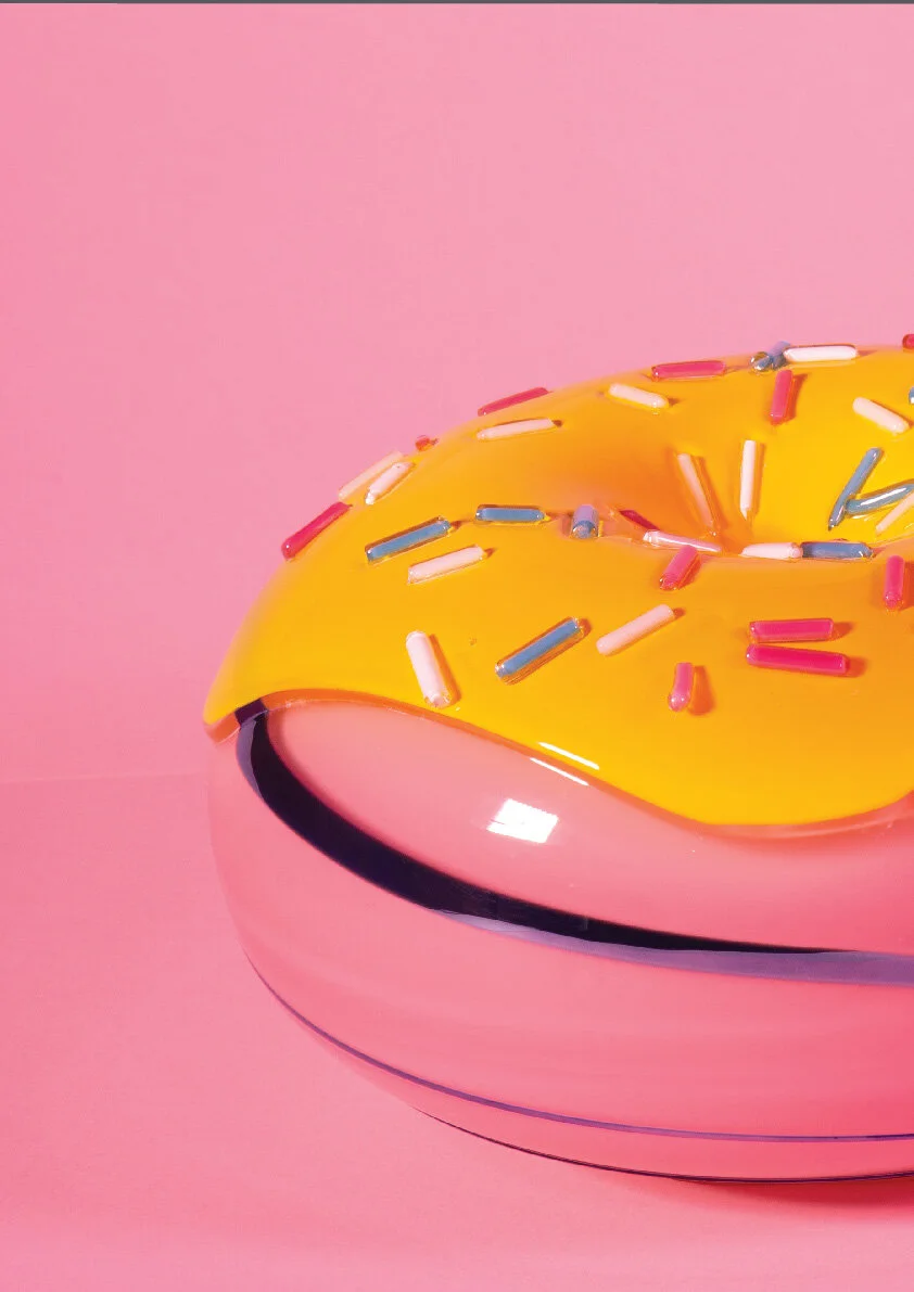 Inspired by pop culture, Erdem’s pieces take everyday objects and slightly distort them. He draws on contemporary culture and childhood memories, with playfulness and fun in the very DNA of his creations. Mass produced items, such as sugared donuts, become one-off items in the workshop of the artisan.