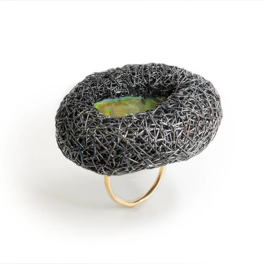 Must a jewel be made from precious metals to hold value, or could it be crafted from something as simple as paper? Isn’t the essence of any piece found in its originality and its challenge to accepted norms, much like a painter’s canvas? While living in Amsterdam years ago, she encountered contemporary jewellery that posed these very questions—ones she continues to explore and debate.